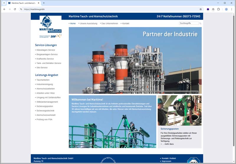 Website für einen Fachbetrieb Tauch- und Atemschutztechnik